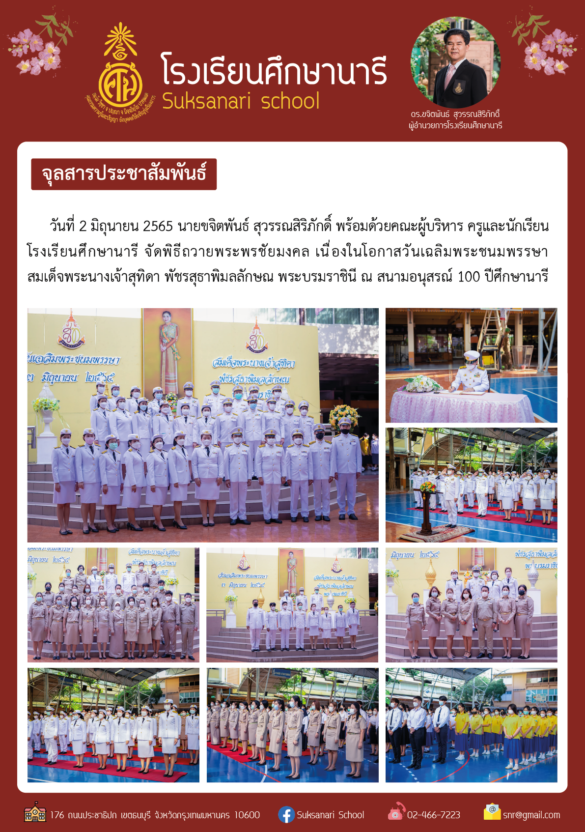 สมาคมผู้ปกครองและครูโรงเรียนศึกษานารี สมาคมนักเรียนเก่าศึกษานารี ผู้บริหาร และนักเรียนโรงเรียนศึกษานารี กำหนดจัดพิธีบวงสรวงอนุสาวรีย์สมเด็จเจ้าพระยาบรมมหาศรีสุริยวงศ์ (ช่วง บุนนาค)