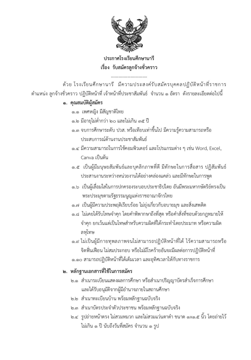 ตำแหน่ง ลูกจ้างชั่วคราว ปฏิบัติหน้าที่ เจ้าหน้าที่ประชาสัมพันธ์