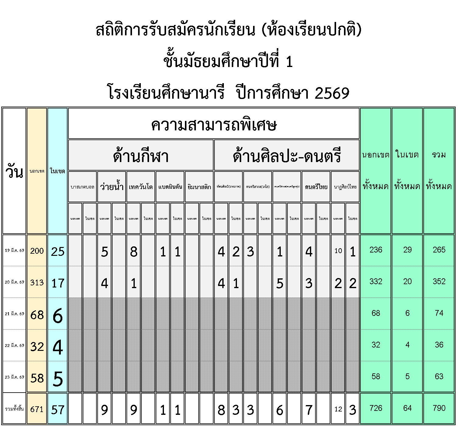 รับสมัครนักเรียนรอบปกติ ม.1 ปีการศึกษา 69